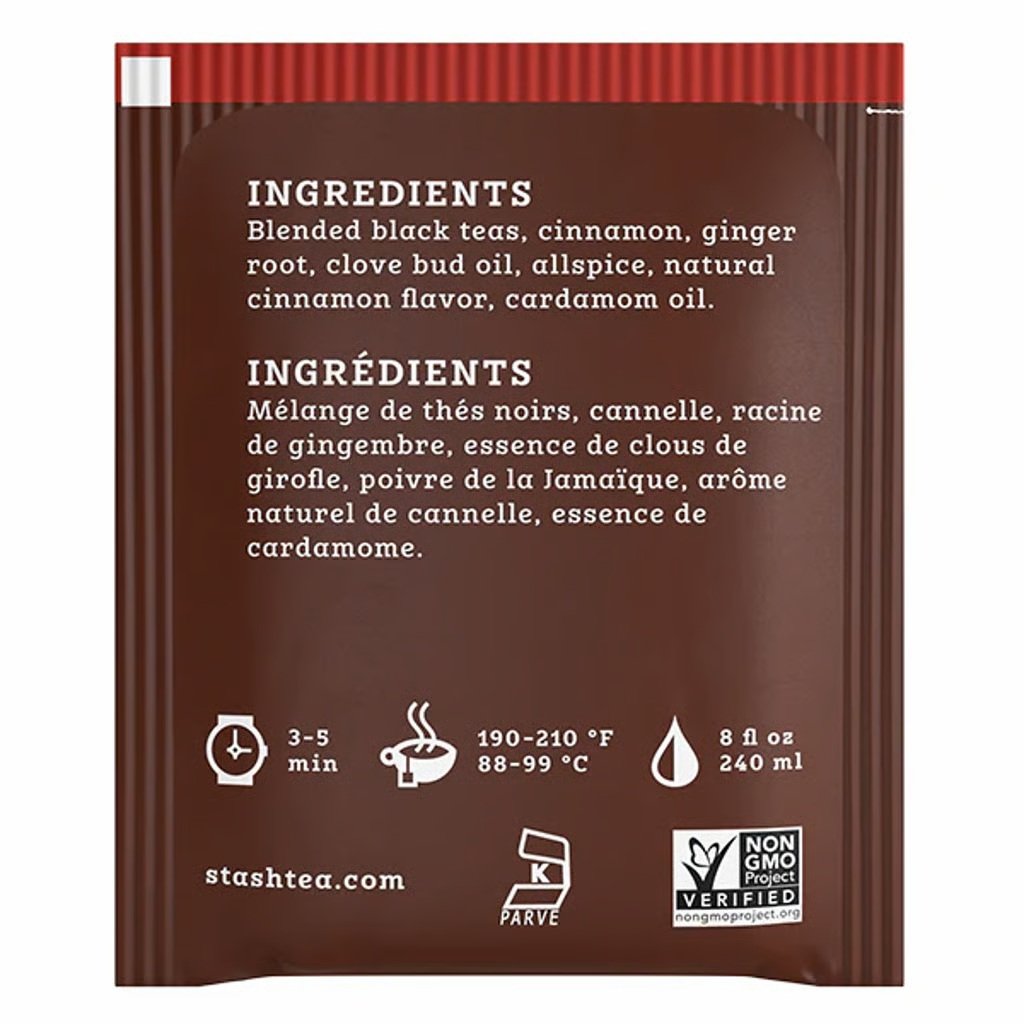 Té negro mezclado, canela, raíz de jengibre, aceite de clavo, pimienta de jamaica, sabor natural a canela, aceite de cardamomo.
